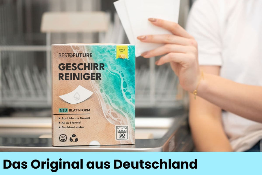 Mit BESTFUTURE ist Geschirrspülen einfacher als je zuvor. Kein Abmessen, keine unnötige Verpackung: Ein Blatt reicht aus! Lege es einfach ins Fach deiner Spülmaschine oder löse es in Wasser auf, wenn du das Geschirr per Hand spülen möchtest. So sparst du Zeit und machst deinen Alltag unkompliziert.